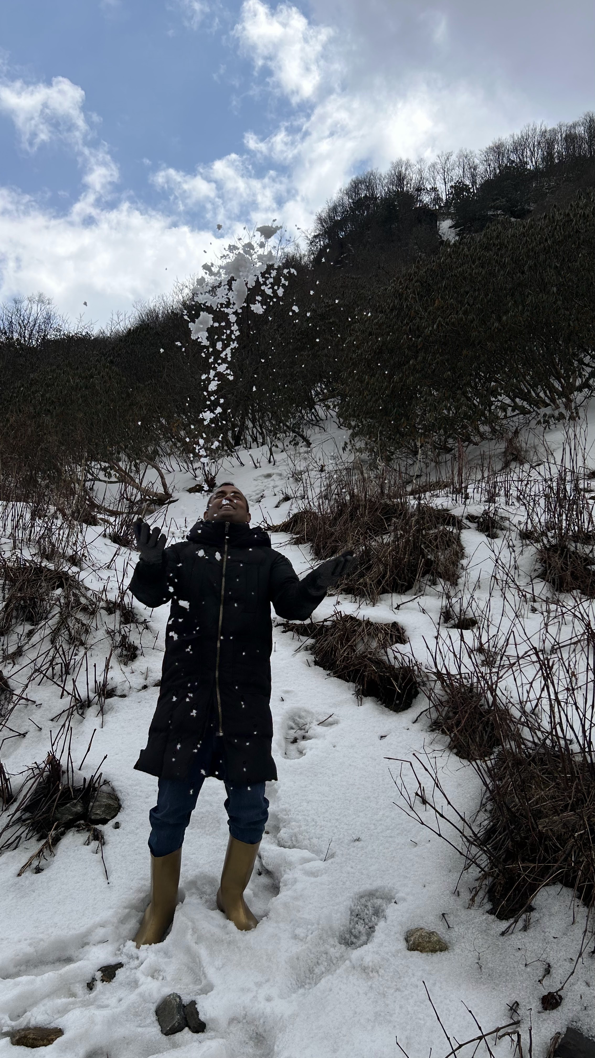 I was lucky because suddenly the sky became cloudy and it started raining. For the first time in my life, I saw snowfall.