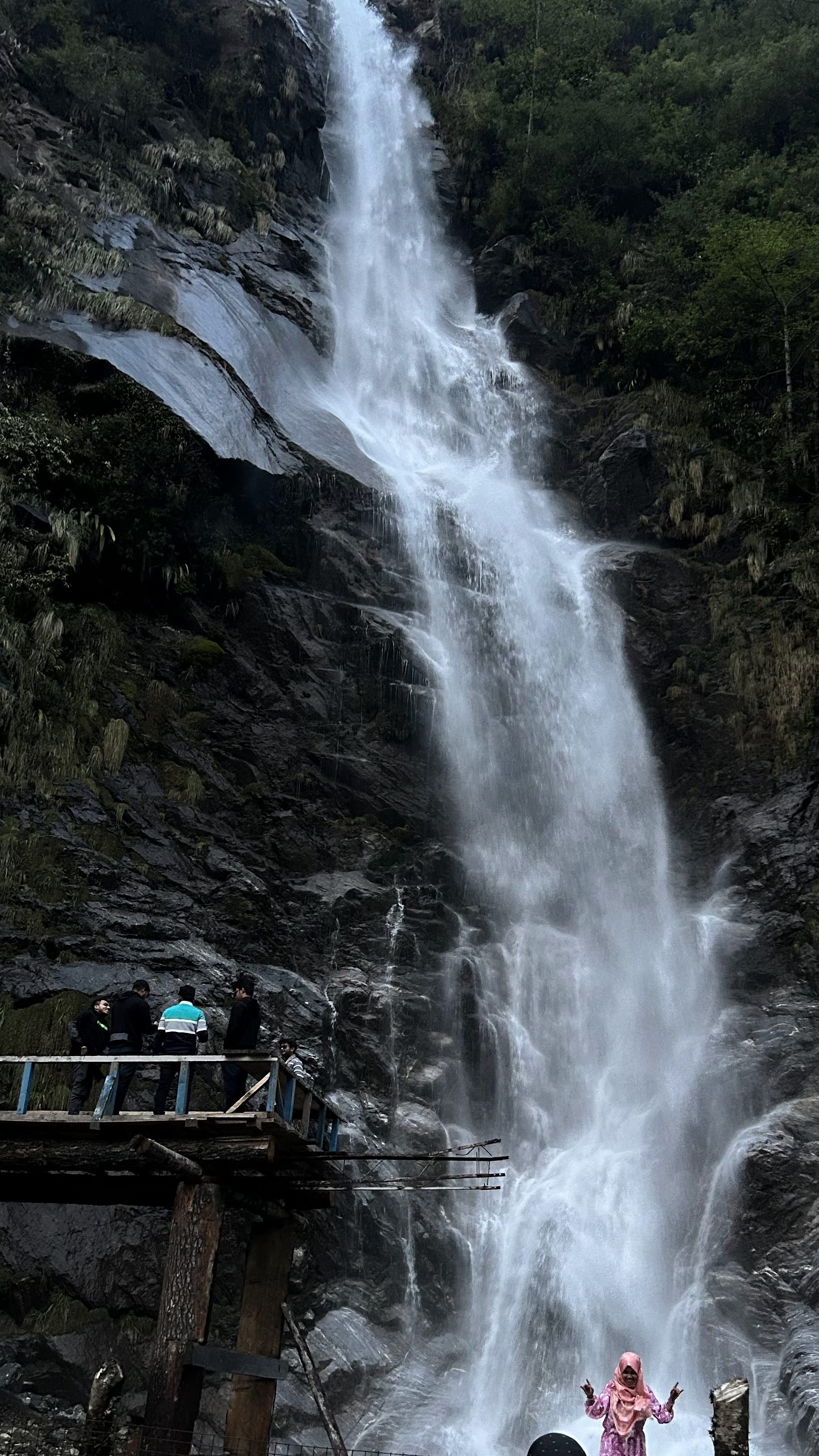On the road, there was a nice waterfall. We stopped there for a while and enjoyed the beautiful waterfall.